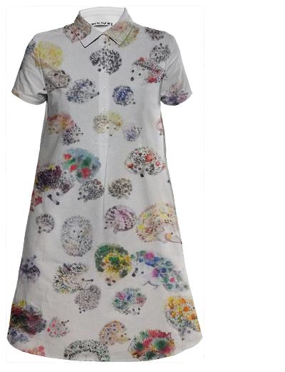 Sporty a-line collared mini dress with short sleeves a 5-button front placket and side seam pockets.