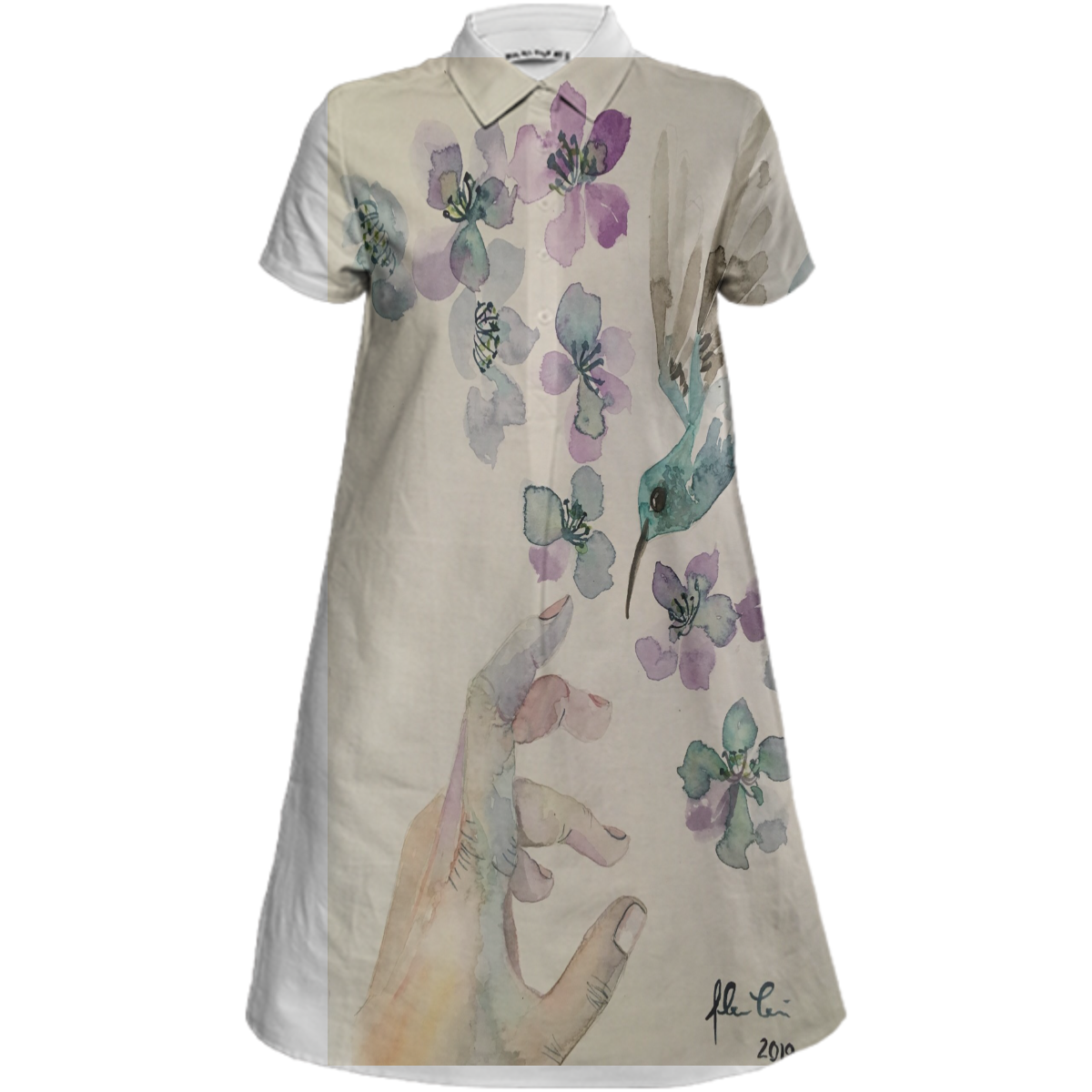 Sporty a-line collared mini dress with short sleeves a 5-button front placket and side seam pockets.