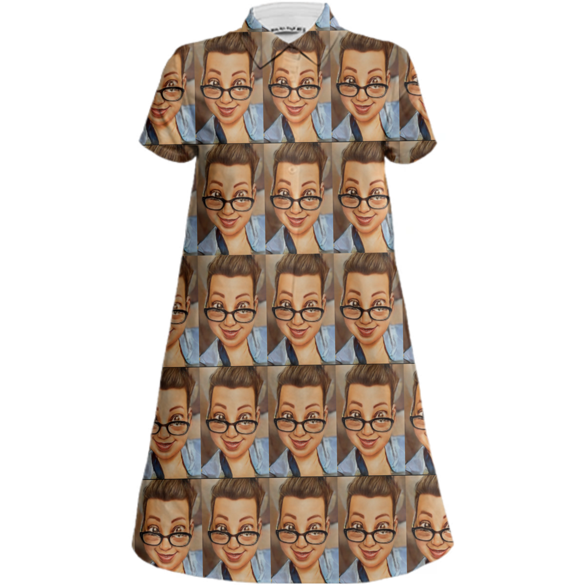 Sporty a-line collared mini dress with short sleeves a 5-button front placket and side seam pockets.