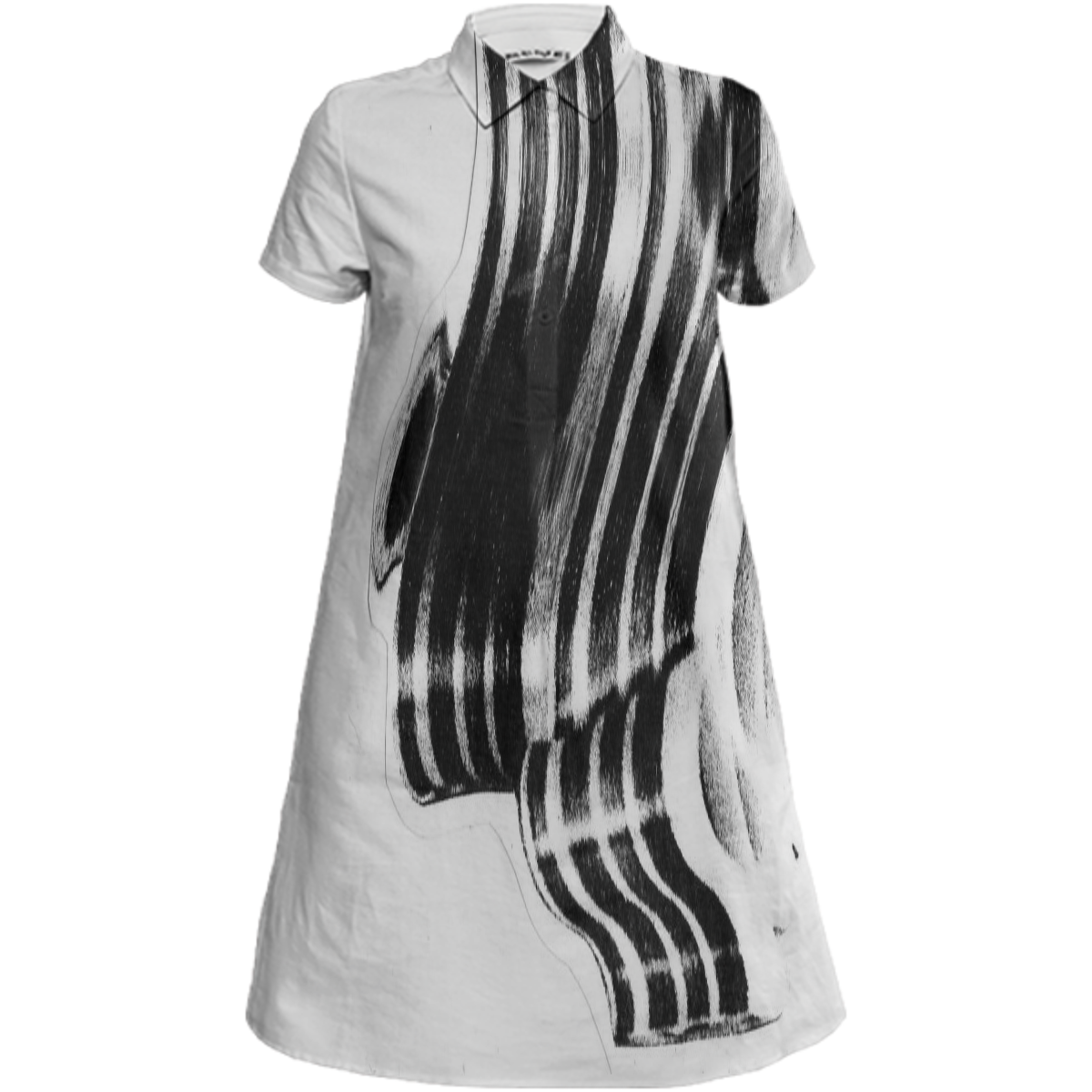 Sporty a-line collared mini dress with short sleeves a 5-button front placket and side seam pockets.