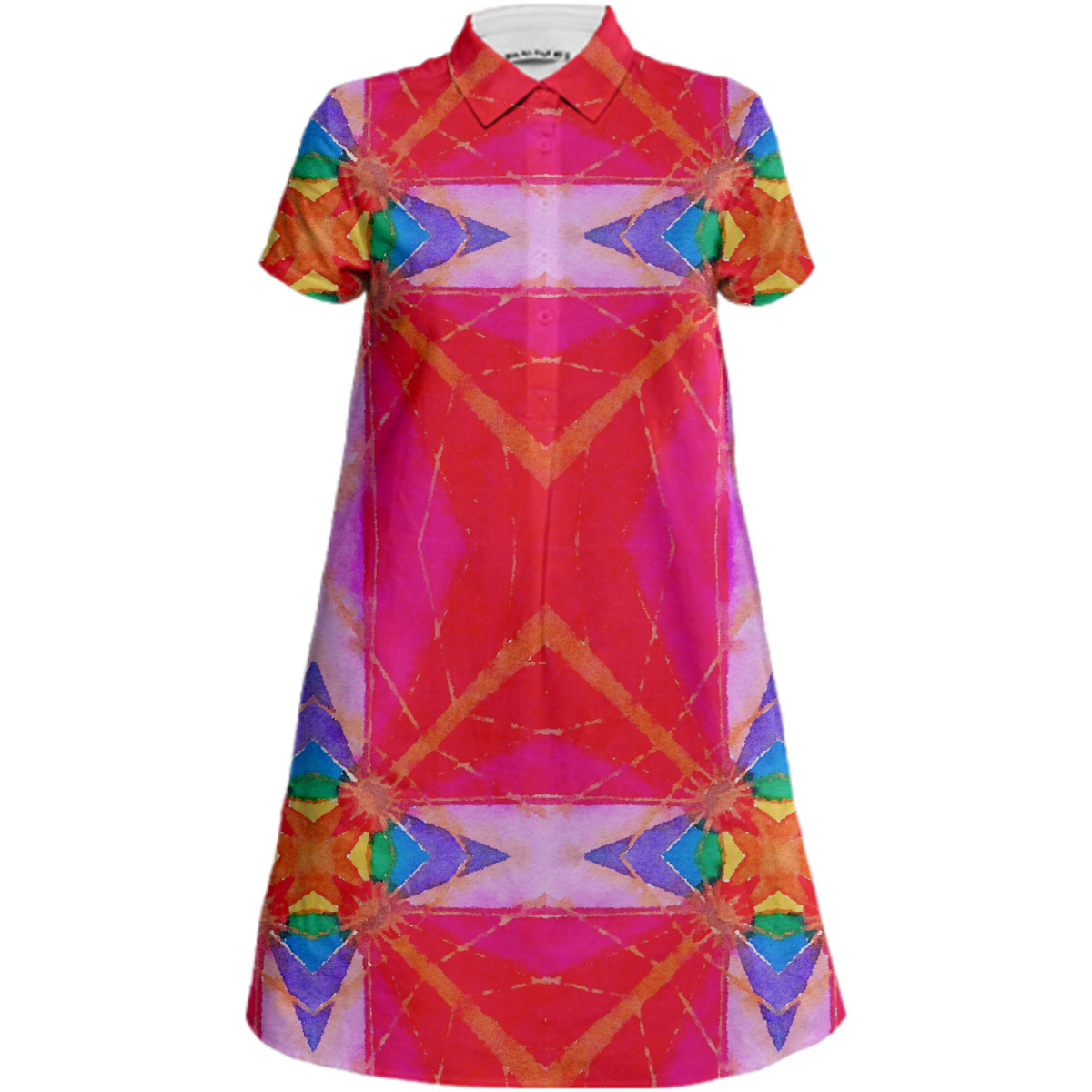 Sporty a-line collared mini dress with short sleeves a 5-button front placket and side seam pockets.