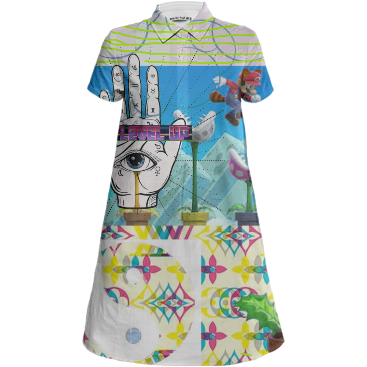 Sporty a-line collared mini dress with short sleeves a 5-button front placket and side seam pockets.