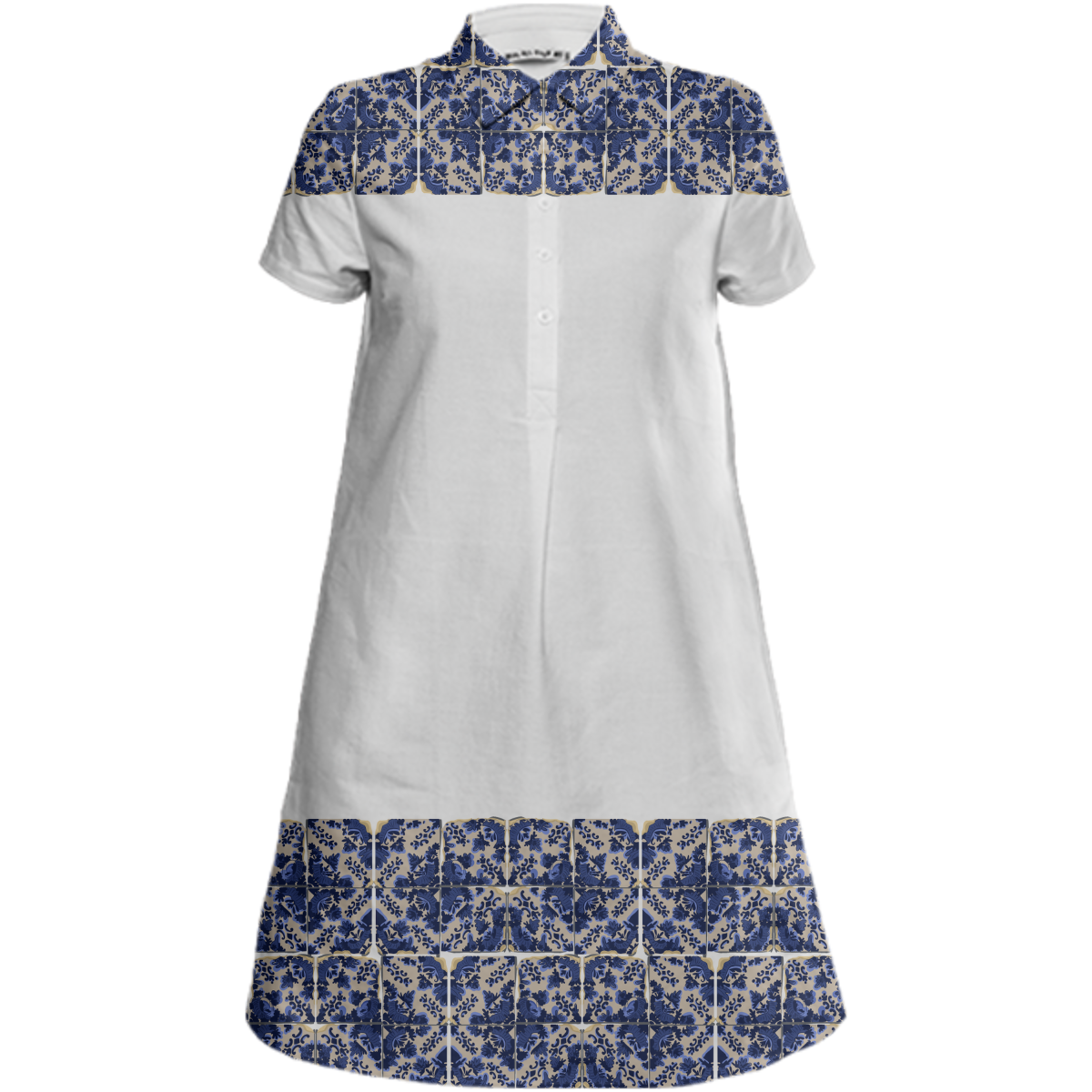 Sporty a-line collared mini dress with short sleeves a 5-button front placket and side seam pockets.