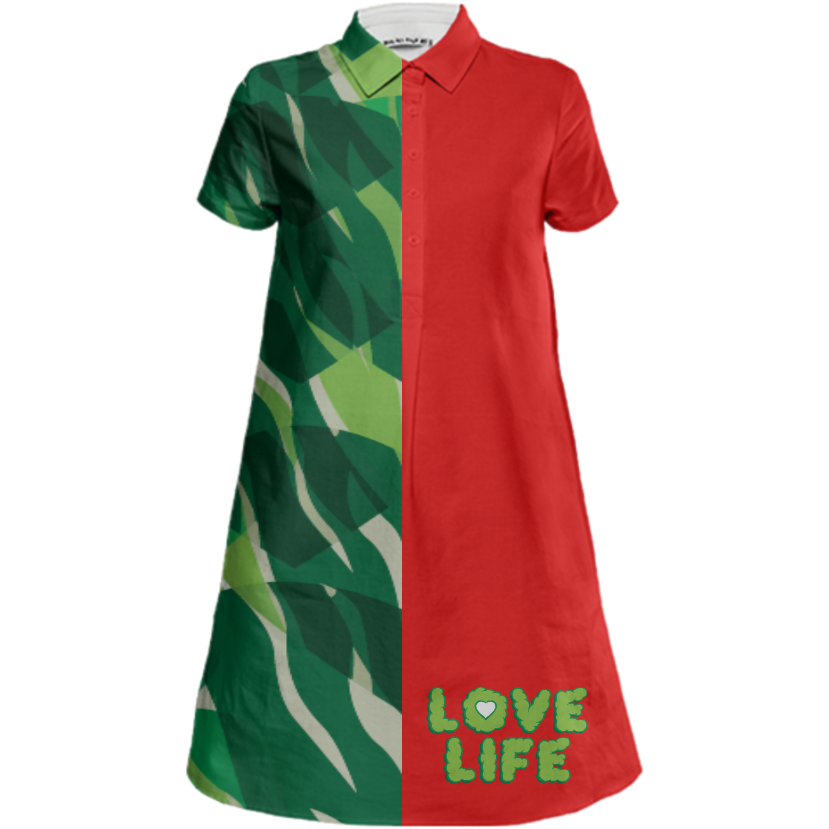 Sporty a-line collared mini dress with short sleeves a 5-button front placket and side seam pockets.