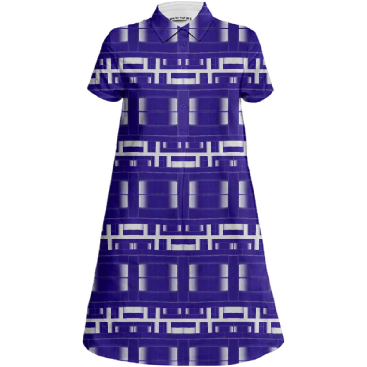 Sporty a-line collared mini dress with short sleeves a 5-button front placket and side seam pockets.