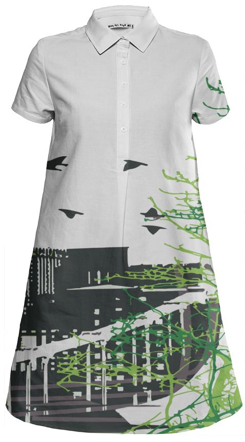 Sporty a-line collared mini dress with short sleeves a 5-button front placket and side seam pockets.