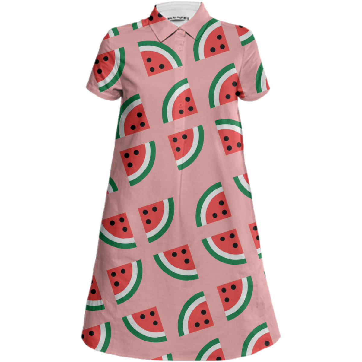 Sporty a-line collared mini dress with short sleeves a 5-button front placket and side seam pockets.
