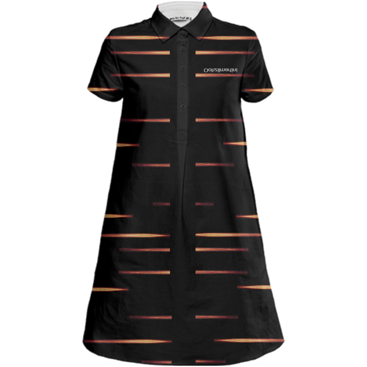Sporty a-line collared mini dress with short sleeves a 5-button front placket and side seam pockets.