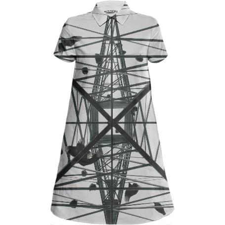 Sporty a-line collared mini dress with short sleeves a 5-button front placket and side seam pockets.