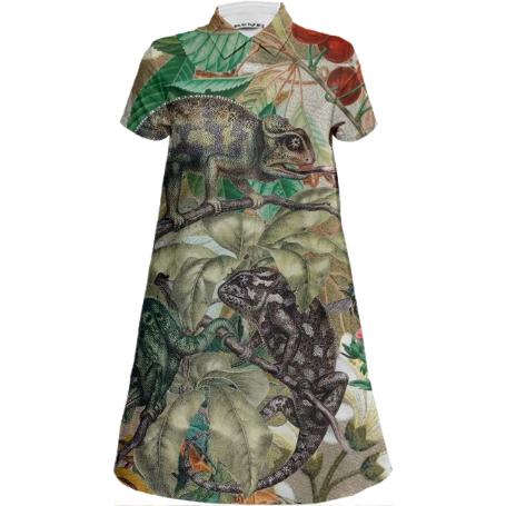 Sporty a-line collared mini dress with short sleeves a 5-button front placket and side seam pockets.