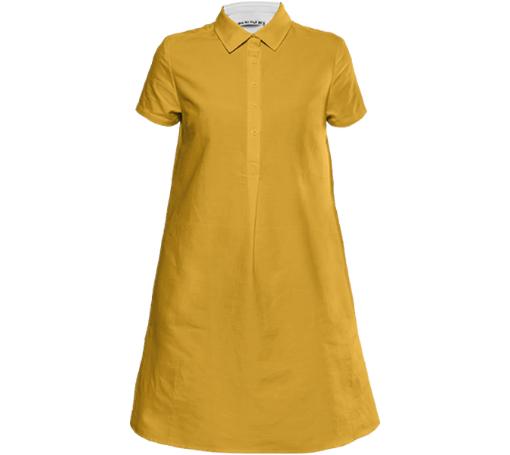 Sporty a-line collared mini dress with short sleeves a 5-button front placket and side seam pockets.