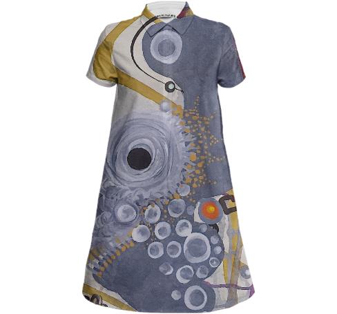 Sporty a-line collared mini dress with short sleeves a 5-button front placket and side seam pockets.