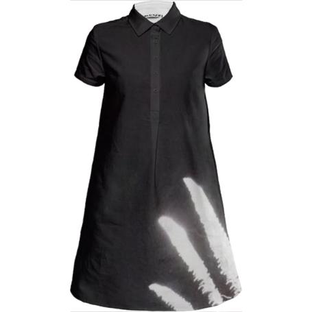 Sporty a-line collared mini dress with short sleeves a 5-button front placket and side seam pockets.