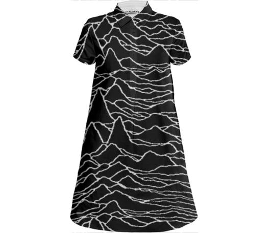 Sporty a-line collared mini dress with short sleeves a 5-button front placket and side seam pockets.