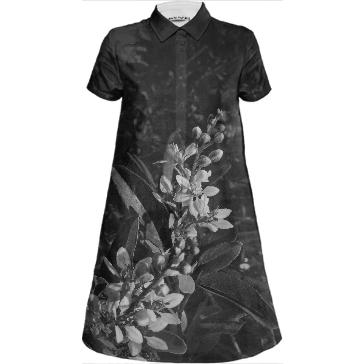 Sporty a-line collared mini dress with short sleeves a 5-button front placket and side seam pockets.