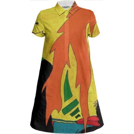 Sporty a-line collared mini dress with short sleeves a 5-button front placket and side seam pockets.