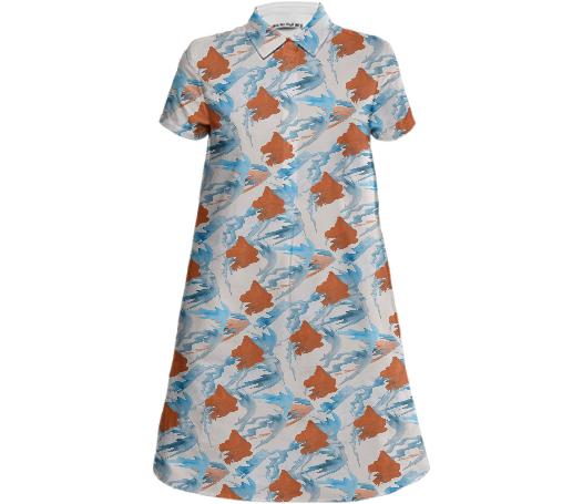 Sporty a-line collared mini dress with short sleeves a 5-button front placket and side seam pockets.