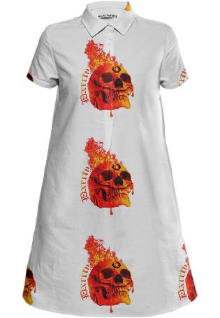 Sporty a-line collared mini dress with short sleeves a 5-button front placket and side seam pockets.