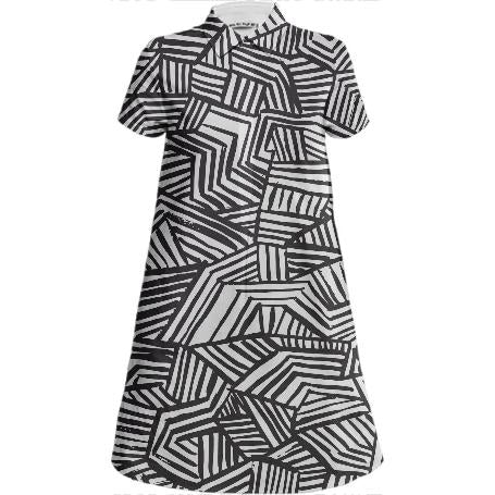 Sporty a-line collared mini dress with short sleeves a 5-button front placket and side seam pockets.