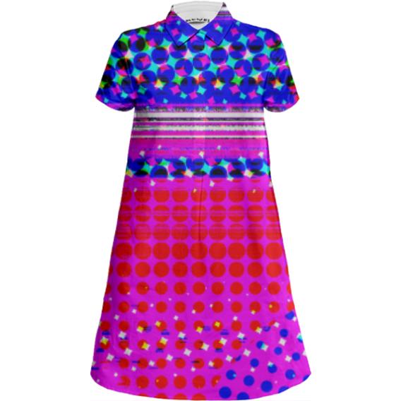 Sporty a-line collared mini dress with short sleeves a 5-button front placket and side seam pockets.