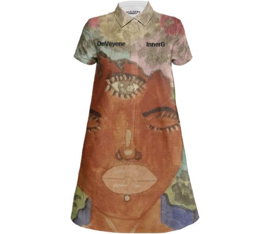 Sporty a-line collared mini dress with short sleeves a 5-button front placket and side seam pockets.