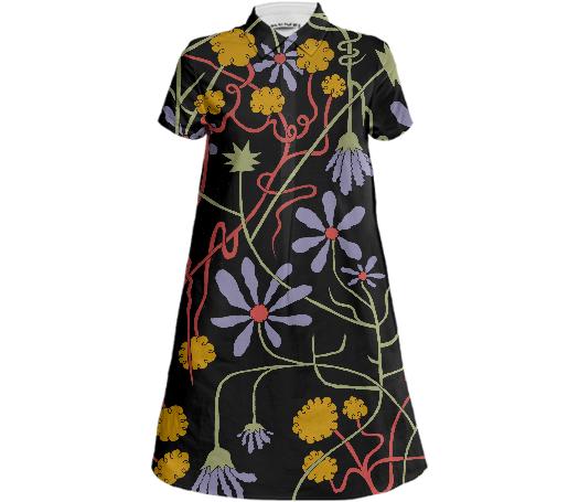 Sporty a-line collared mini dress with short sleeves a 5-button front placket and side seam pockets.
