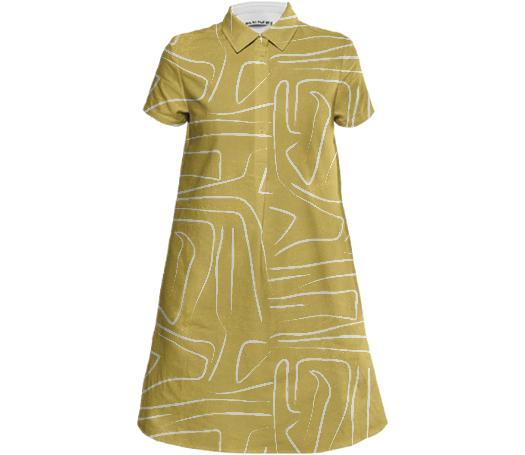 Sporty a-line collared mini dress with short sleeves a 5-button front placket and side seam pockets.