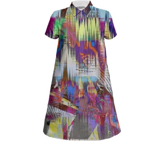 Sporty a-line collared mini dress with short sleeves a 5-button front placket and side seam pockets.