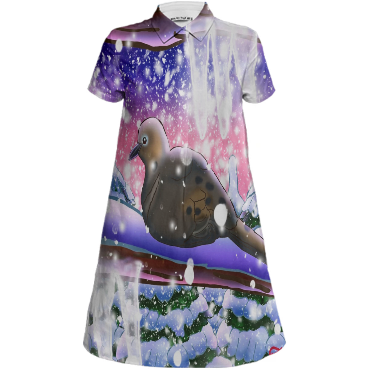 Sporty a-line collared mini dress with short sleeves a 5-button front placket and side seam pockets.