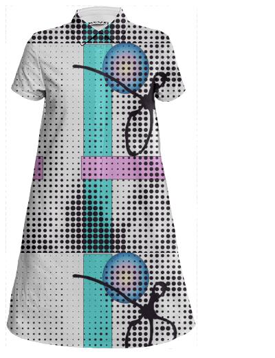 Sporty a-line collared mini dress with short sleeves a 5-button front placket and side seam pockets.