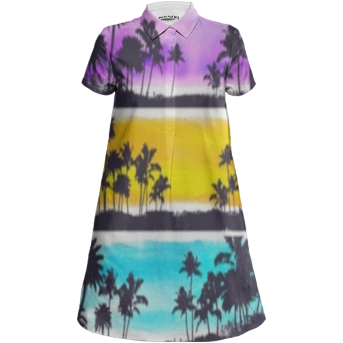 Sporty a-line collared mini dress with short sleeves a 5-button front placket and side seam pockets.