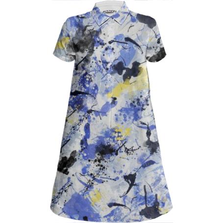 Sporty a-line collared mini dress with short sleeves a 5-button front placket and side seam pockets.