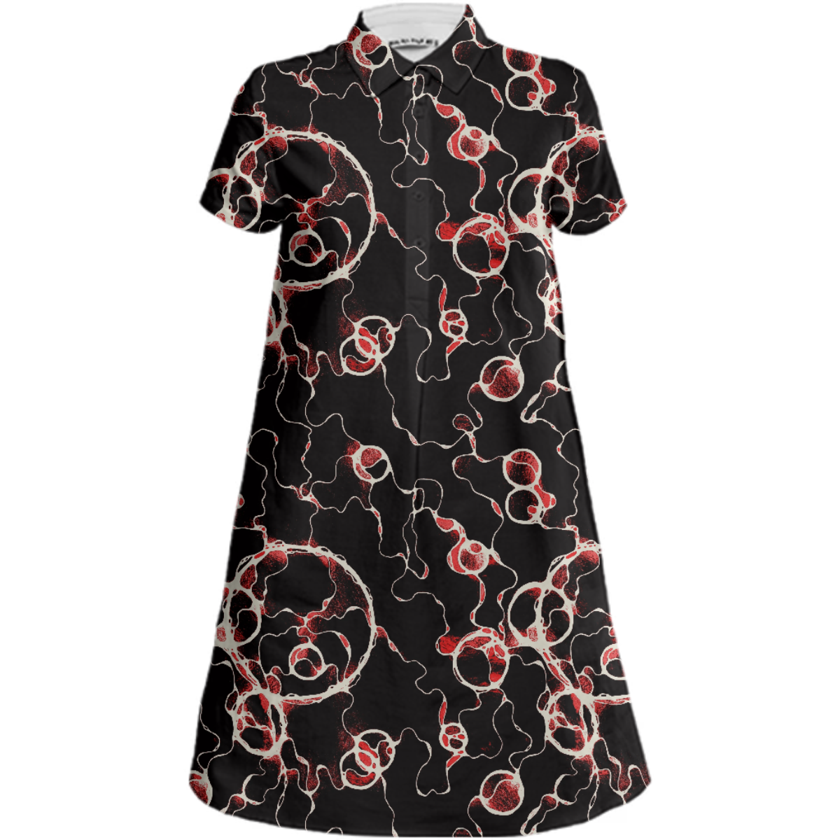 Sporty a-line collared mini dress with short sleeves a 5-button front placket and side seam pockets.
