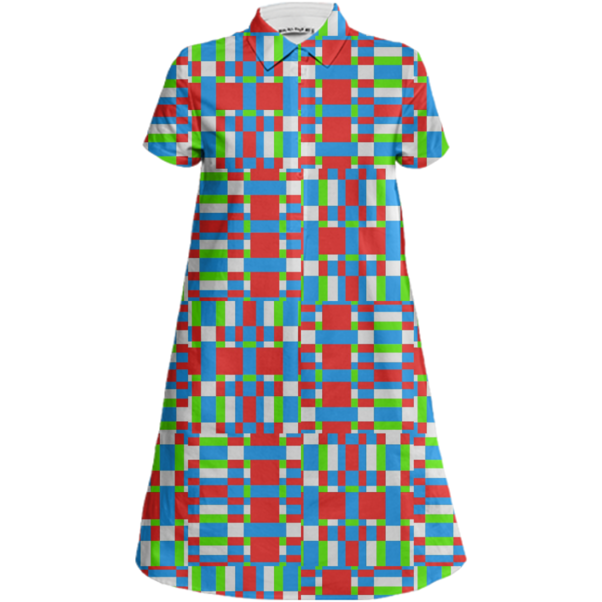 Sporty a-line collared mini dress with short sleeves a 5-button front placket and side seam pockets.