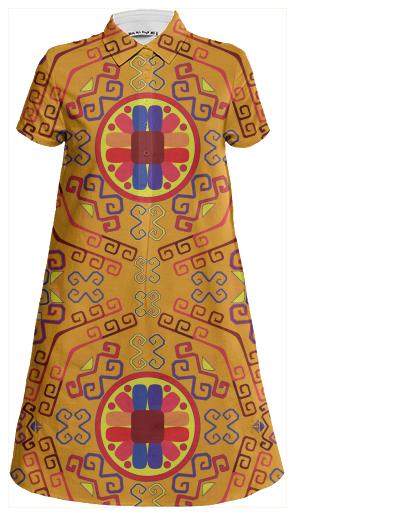 Sporty a-line collared mini dress with short sleeves a 5-button front placket and side seam pockets.