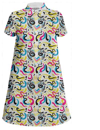 Sporty a-line collared mini dress with short sleeves a 5-button front placket and side seam pockets.