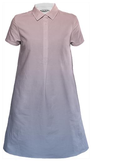 Sporty a-line collared mini dress with short sleeves a 5-button front placket and side seam pockets.