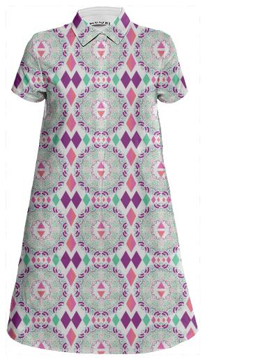 Sporty a-line collared mini dress with short sleeves a 5-button front placket and side seam pockets.