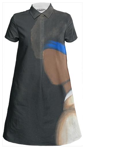 Sporty a-line collared mini dress with short sleeves a 5-button front placket and side seam pockets.