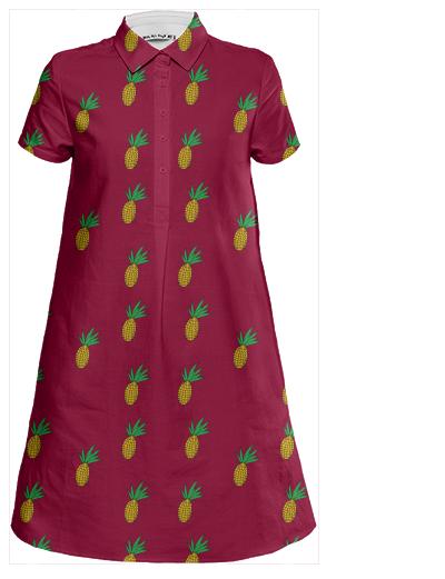 Sporty a-line collared mini dress with short sleeves a 5-button front placket and side seam pockets.