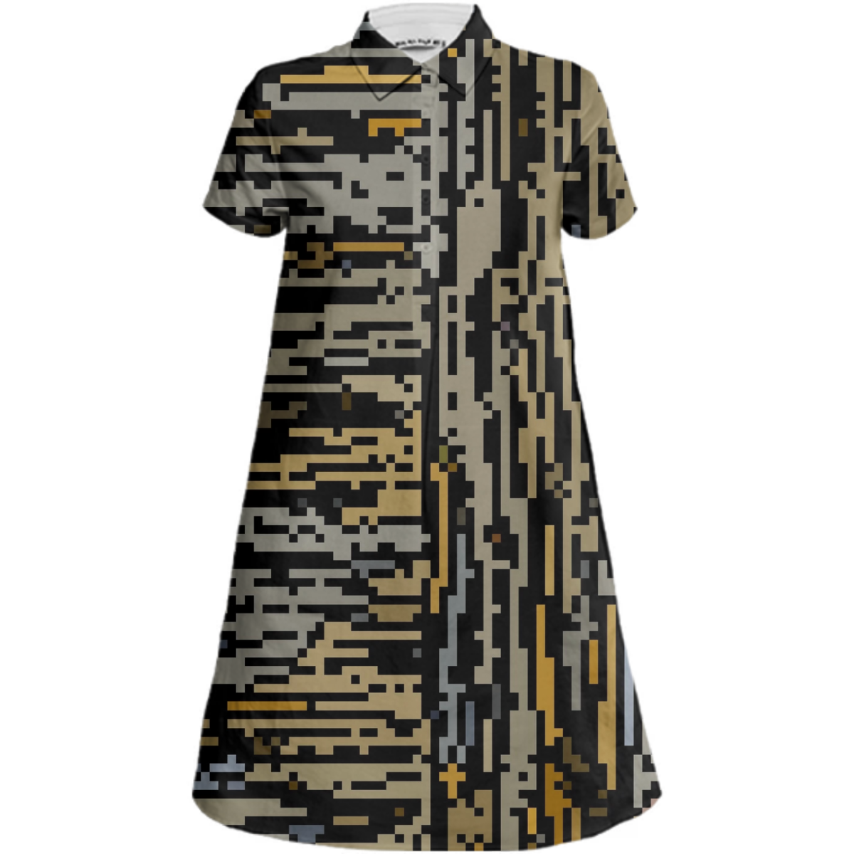 Sporty a-line collared mini dress with short sleeves a 5-button front placket and side seam pockets.