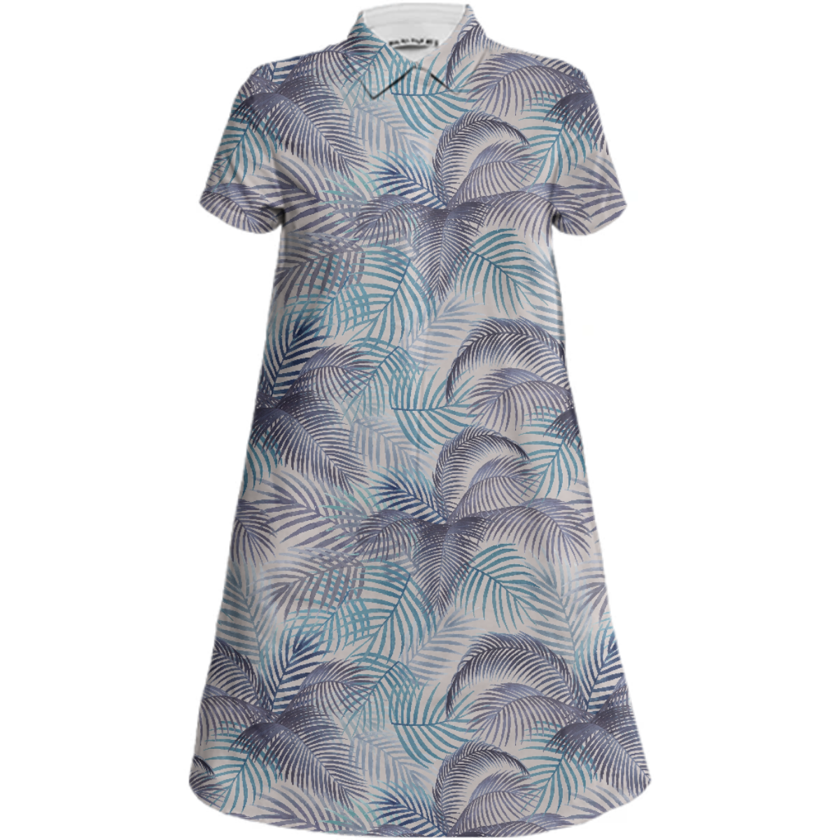 Sporty a-line collared mini dress with short sleeves a 5-button front placket and side seam pockets.
