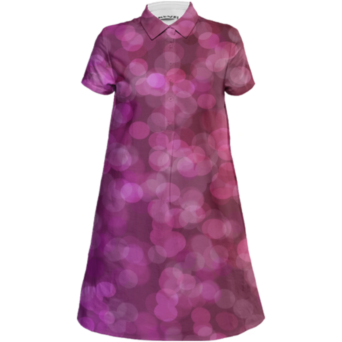 Sporty a-line collared mini dress with short sleeves a 5-button front placket and side seam pockets.