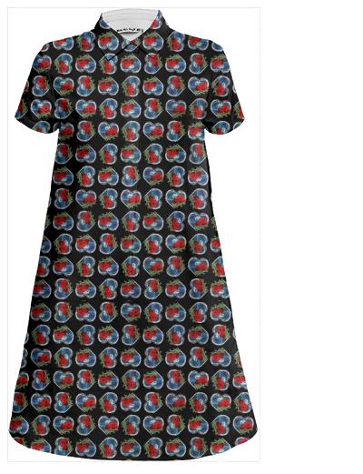Sporty a-line collared mini dress with short sleeves a 5-button front placket and side seam pockets.