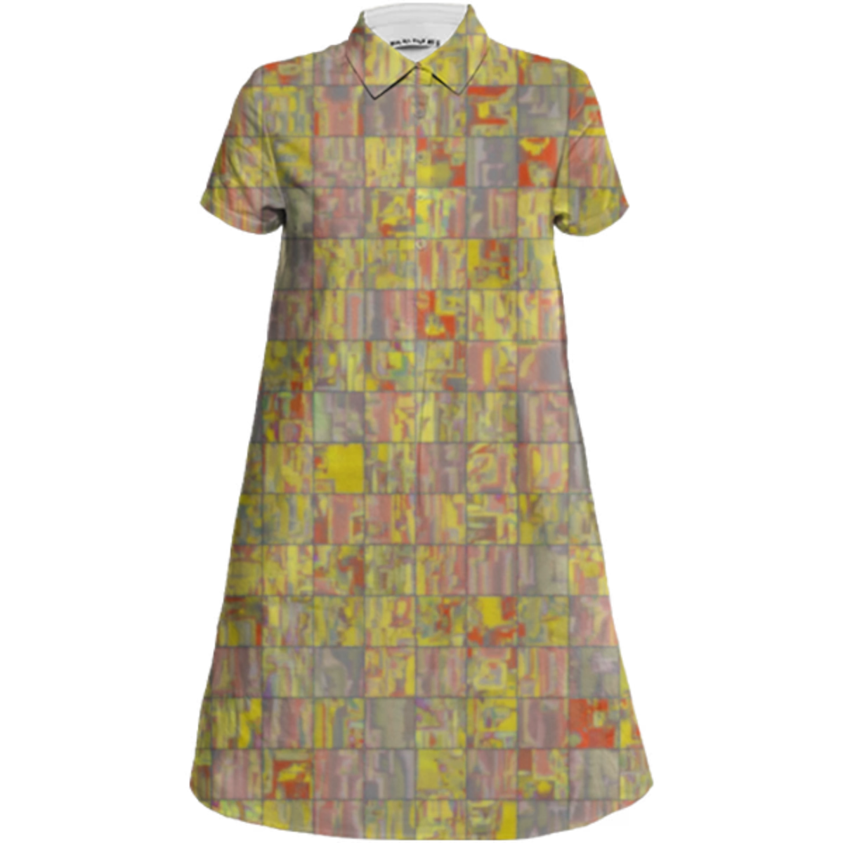 Sporty a-line collared mini dress with short sleeves a 5-button front placket and side seam pockets.