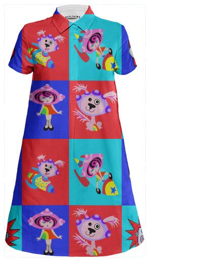 Sporty a-line collared mini dress with short sleeves a 5-button front placket and side seam pockets.
