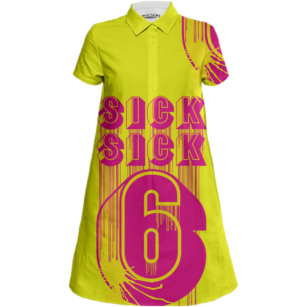 Sporty a-line collared mini dress with short sleeves a 5-button front placket and side seam pockets.