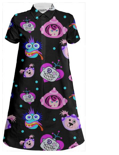 Sporty a-line collared mini dress with short sleeves a 5-button front placket and side seam pockets.