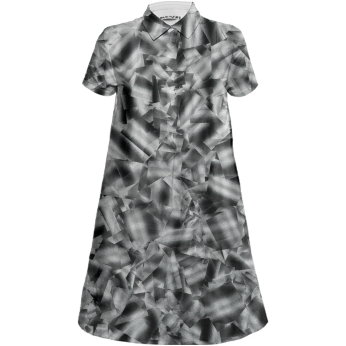 Sporty a-line collared mini dress with short sleeves a 5-button front placket and side seam pockets.