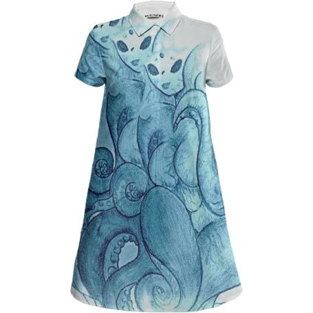 Sporty a-line collared mini dress with short sleeves a 5-button front placket and side seam pockets.